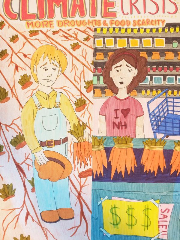 We received five submissions for our Climate Crisis Poster Contest. We have selected three of the posters to be installed in street-side display cases in New Haven's neighborhoods. The artists will receive awards of $500 each. We have two runners up. Those artists will receive $250 each. We want to thank our young artists and congratulate them for their fine work!